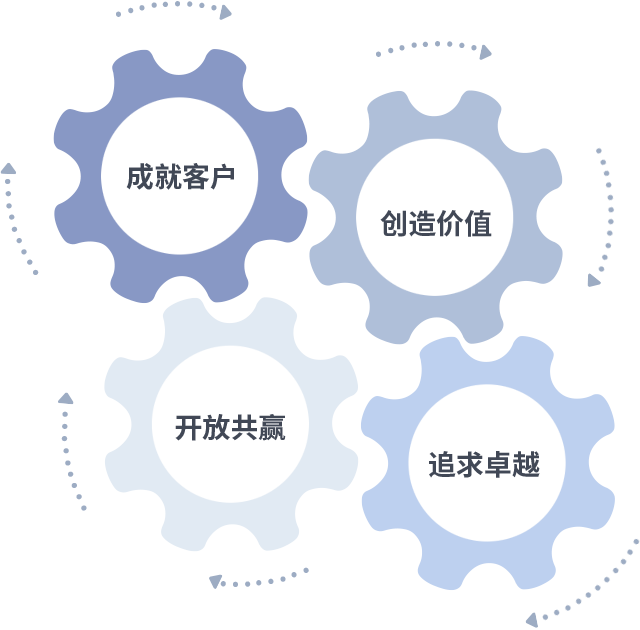 成就客户是一切决策的出发点,创造价值是衡量所有工作的标准,追求卓越是1277星际电子做事做人的态度,开放共赢是1277星际电子的格局也是最终的结果。价值观的齿轮环环相扣,推动着组织里的每个人不断向前。